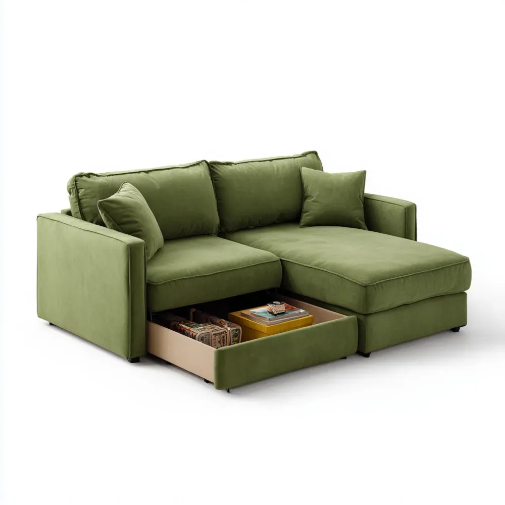 ソファセット 布製 200x90x80 cm - グリーン 収納付き
