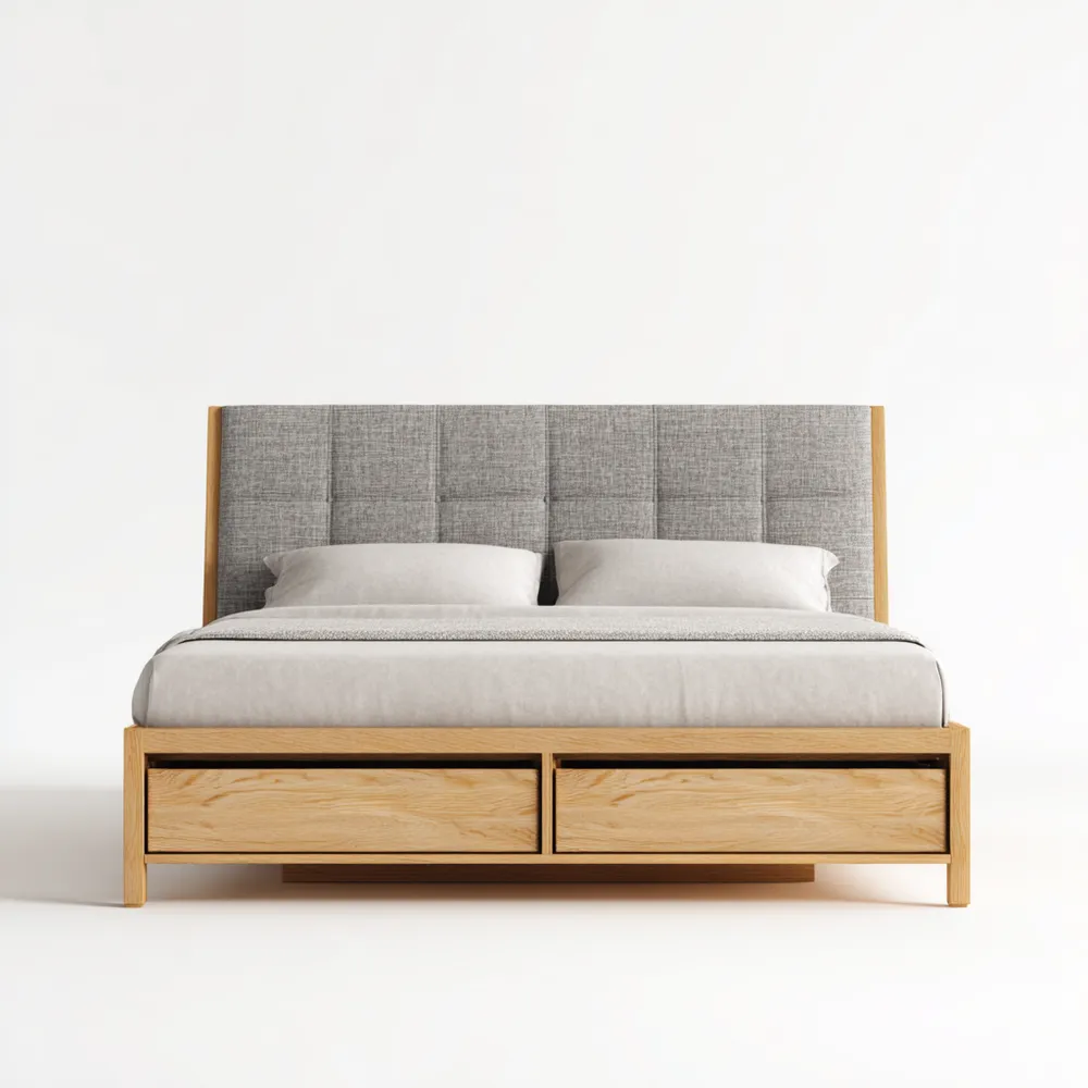 ダブルベッド ウッドフレーム 収納付き グレー - モダンスタイル 200x140x100 cm