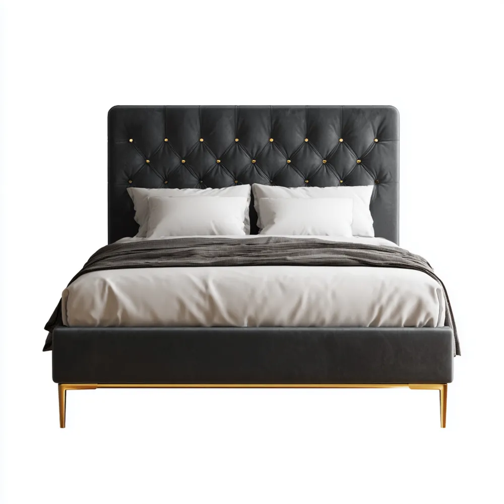 ダブルベッド モダンデザイン 140x200x120 cm - ベージュ